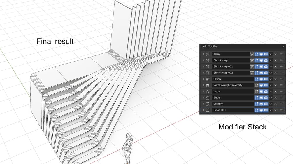 Parametric stairs file. A parametric rig for stairs that is easily modifiable to suit the needs of the spatial requirements. Also shows general procedural techniques to use with Blender for architectural design.
